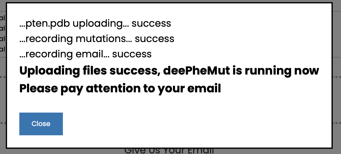 (1) To prevent excessive pressure on the server, we now prohibit submitting one query while the server is running another. Check the Server Status at the top of the page. If IDLE indicates that the server is idle, data can be uploaded.